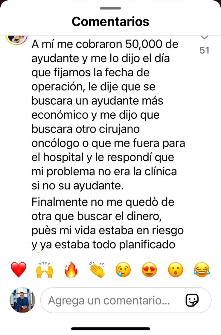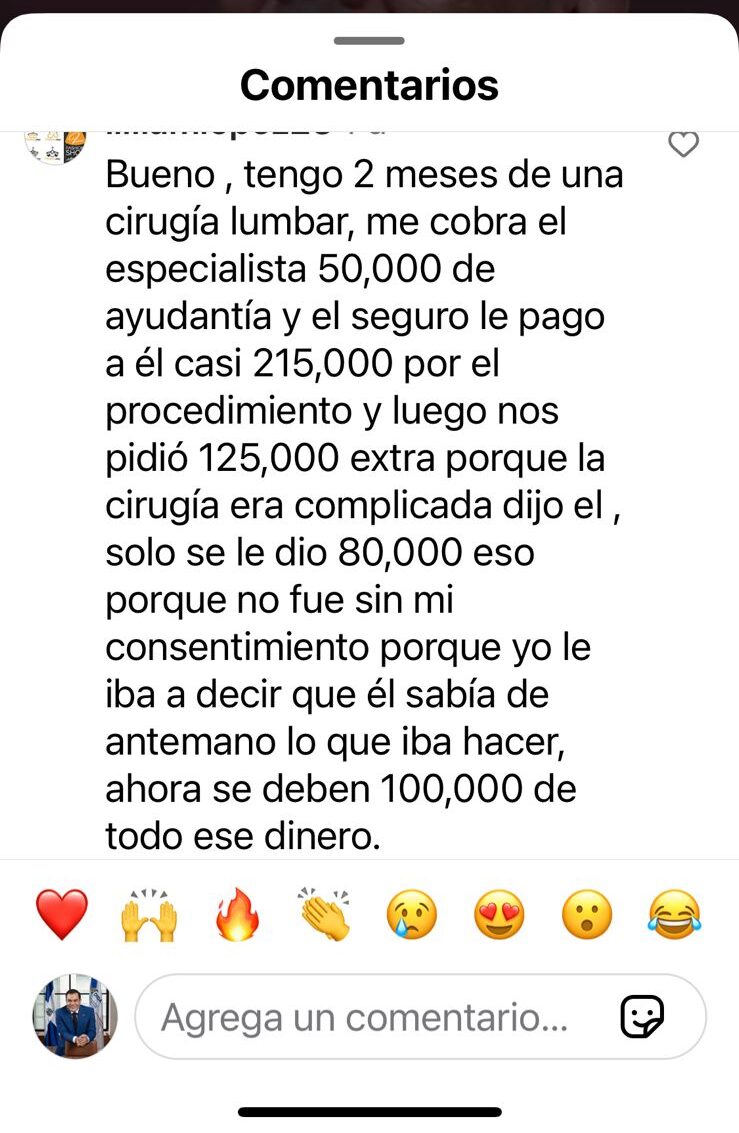 - "Me cobraron 50,000 por la ayudantía del cirujano, pese a que el seguro ya había pagado por el procedimiento."